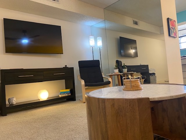 Key features include mountain views, cable, WiFi, AC, and an electric BBQ, creating a comfortable and connected environment for extended visits. The condo is particularly well-suited for traveling health professionals, with easy blackout capability to support daytime sleep and non-traditional schedules.